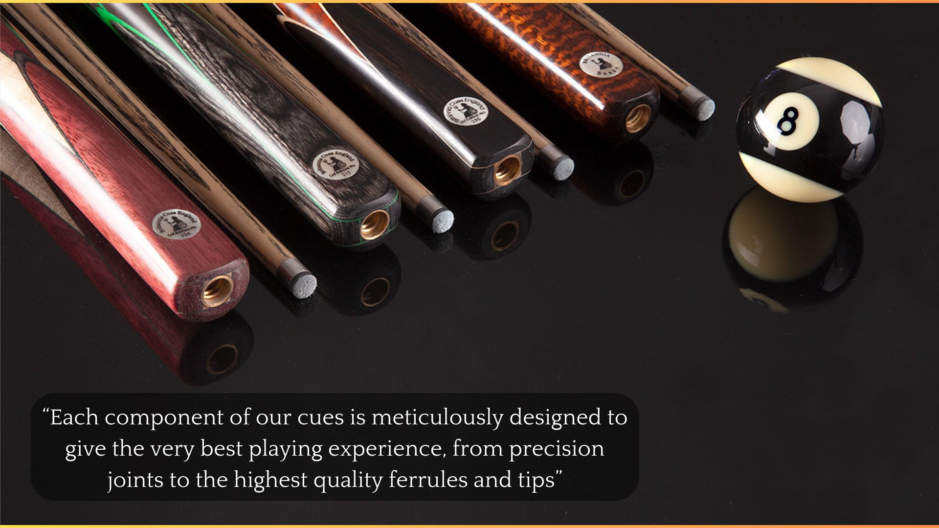 Their artisans' passion for meticulous handcrafting techniques, dedication to using only the finest sustainable exotic woods available and consistently trendsetting the latest innovative manufacturing processes, award Britannia Cues a top spot in the cue sports industry.